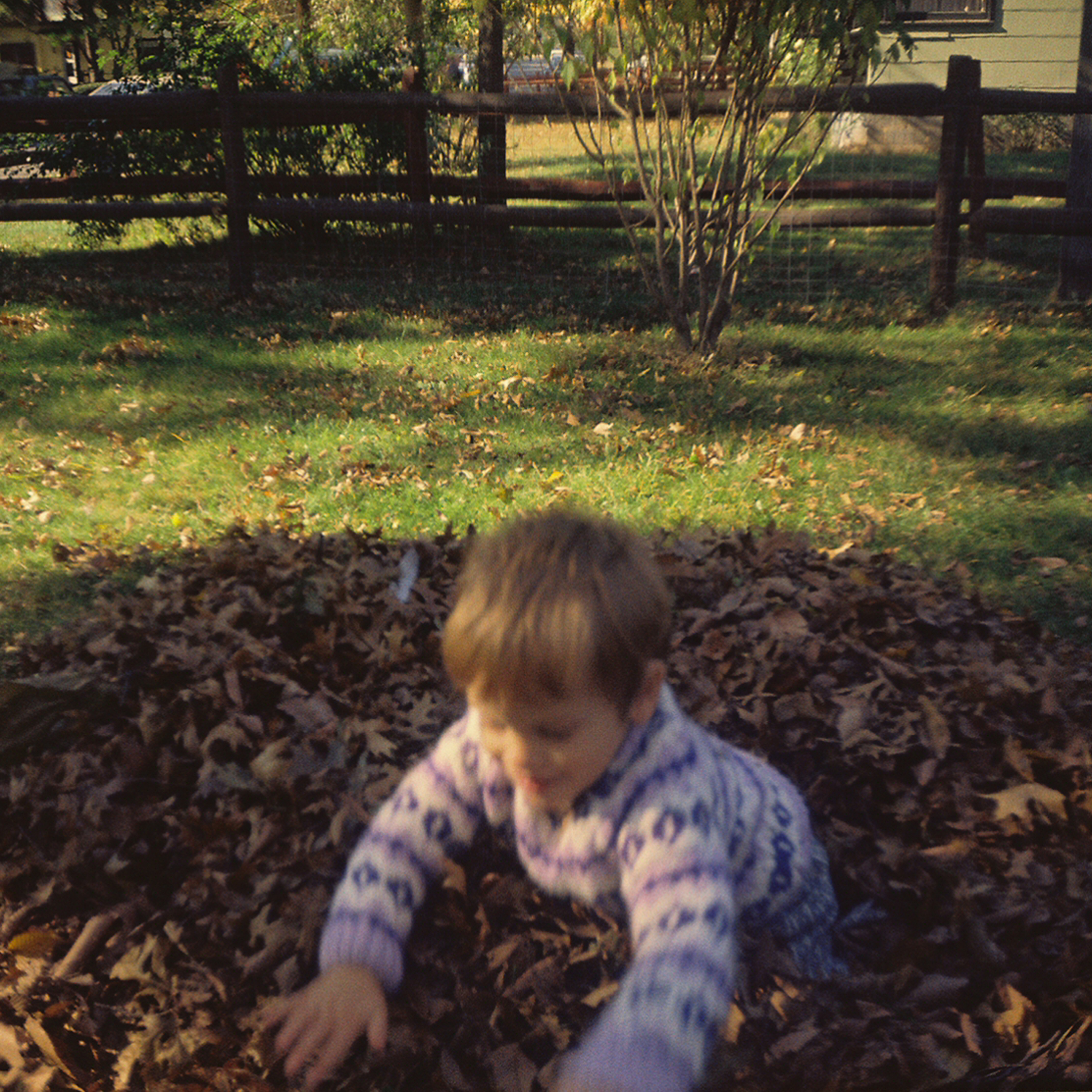 My brother and I used to like playing in leaf piles in the 1970s. Sometimes, Mom would make leaf houses for us. This was basically just raking the leaves into low piles as walls, forming some rooms. I wish that I we had some photos of that.